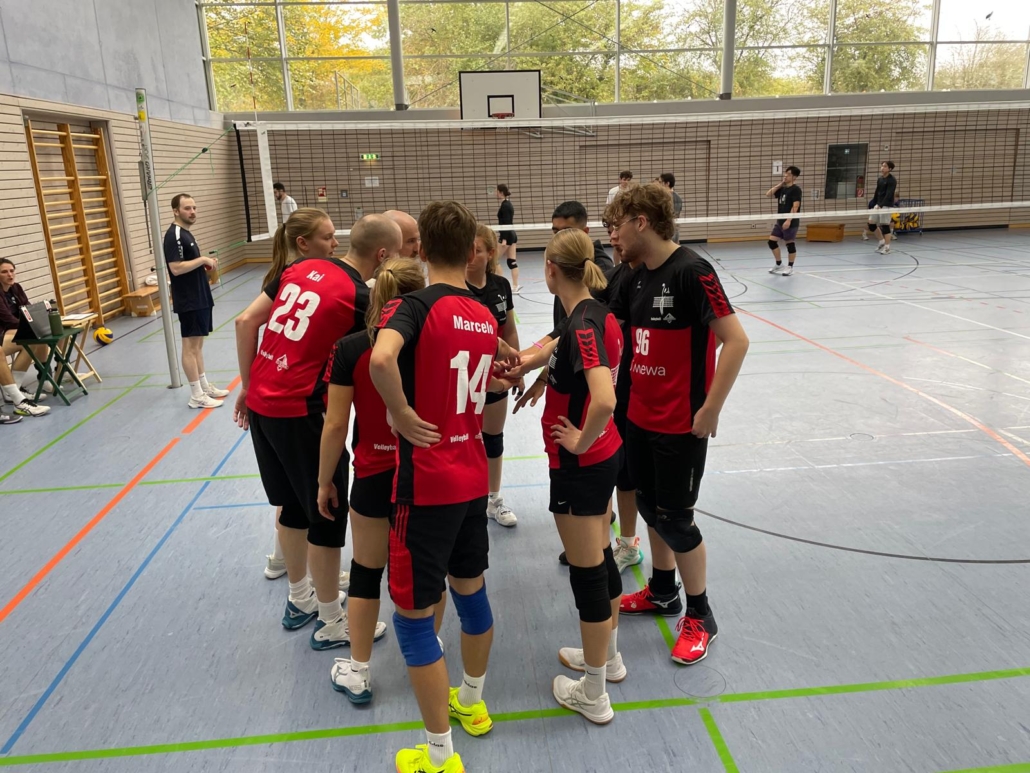 - Diese sowie eine weitere Gruppe trainieren – teilweise gemeinsam – alle Elemente im Volleyball und spielen regelmäßig auf Turnieren.