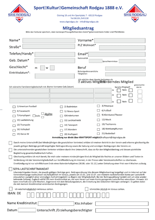 S.K.G Mitgliedsantrag