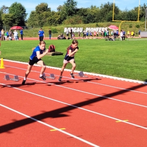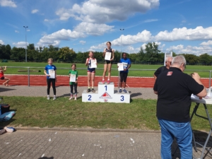 Im Vierkampf der U14 überzeugte Arina Sochnev (W13) mit einer neuen Hochsprung-Bestleistung von 1,30 m und Bronze in der Gesamtwertung. Joela Hörter (W12) erreichte mit dem schnellsten 75-m-Lauf und dem weitesten Sprung Platz zwei.