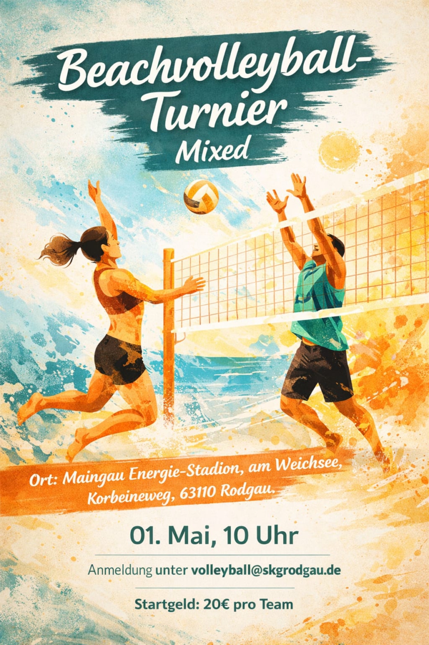 Sonnige Einladung der Beachabteilung der SKG-Rodgau zu unserem Saison-Eröffnungsturnier. 🌞